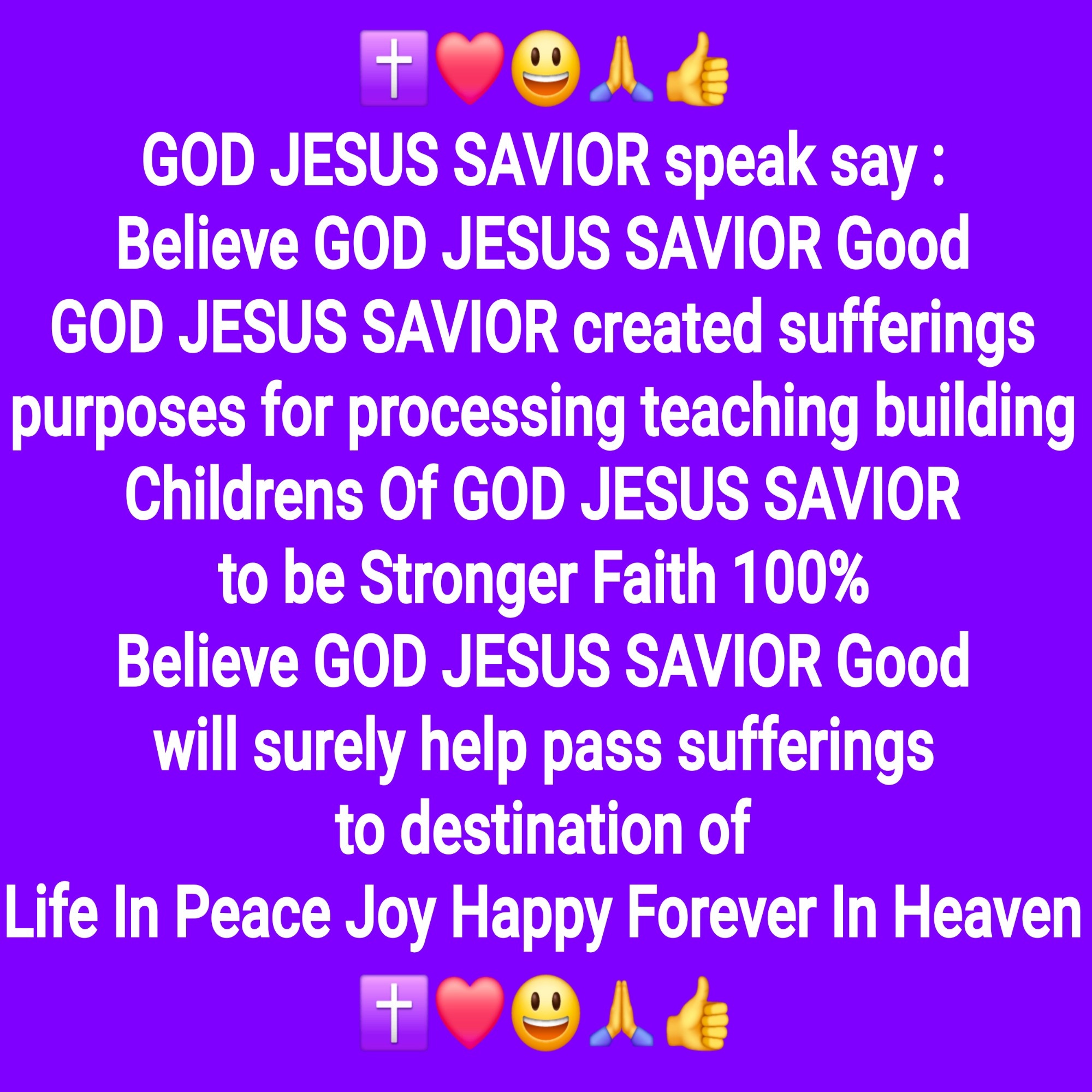 GOD JESUS SAVIOR created sufferings purposes for processing teaching building Childrens Of GOD JESUS SAVIOR to be Stronger Faith 100% Believe GOD JESUS SAVIOR Good will surely help pass sufferings to destination of Life In Peace Joy Happy Forever In Heaven