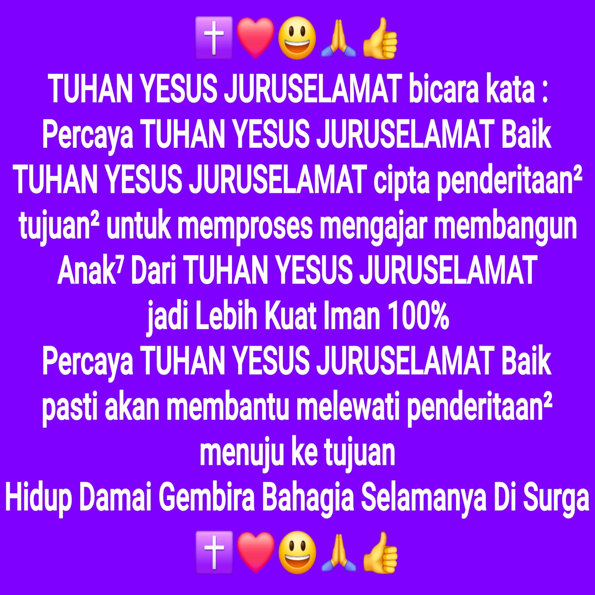 TUHAN YESUS JURUSELAMAT cipta penderitaan² tujuan² untuk memproses mengajar membangun Anak⁷ Dari TUHAN YESUS JURUSELAMAT jadi Lebih Kuat Iman 100% Percaya TUHAN YESUS JURUSELAMAT Baik pasti akan membantu melewati penderitaan² menuju ke tujuan Hidup Damai Gembira Bahagia Selamanya Di Surga