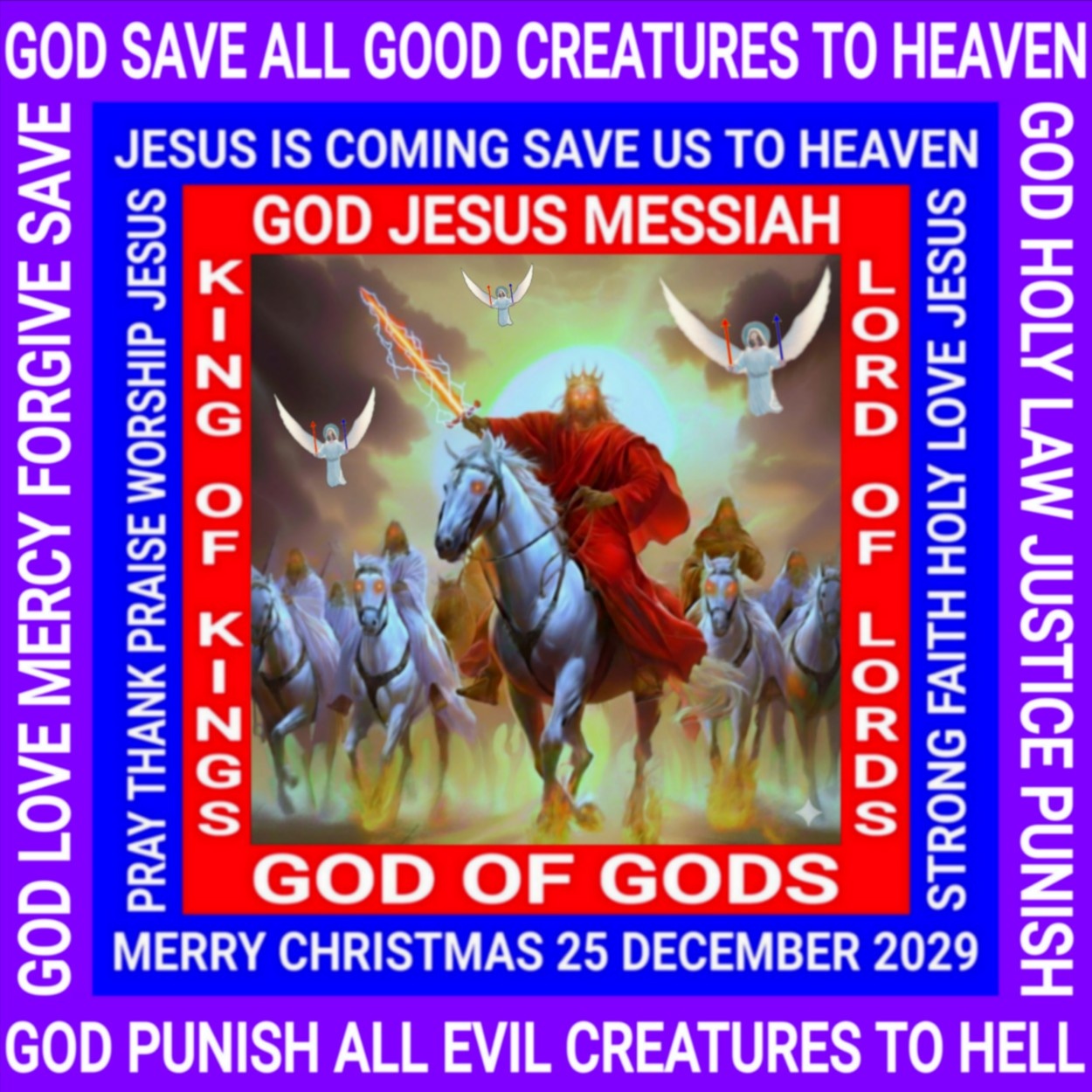 GOD JESUS MESSIAH with Angels Armies of Heaven will comed ~ 25 december 2029 ~ world armageddon war 7 days ~ 31 december 2029 ~ GOD JESUS MESSIAH win victory will punished satans evils creatures to hell forever